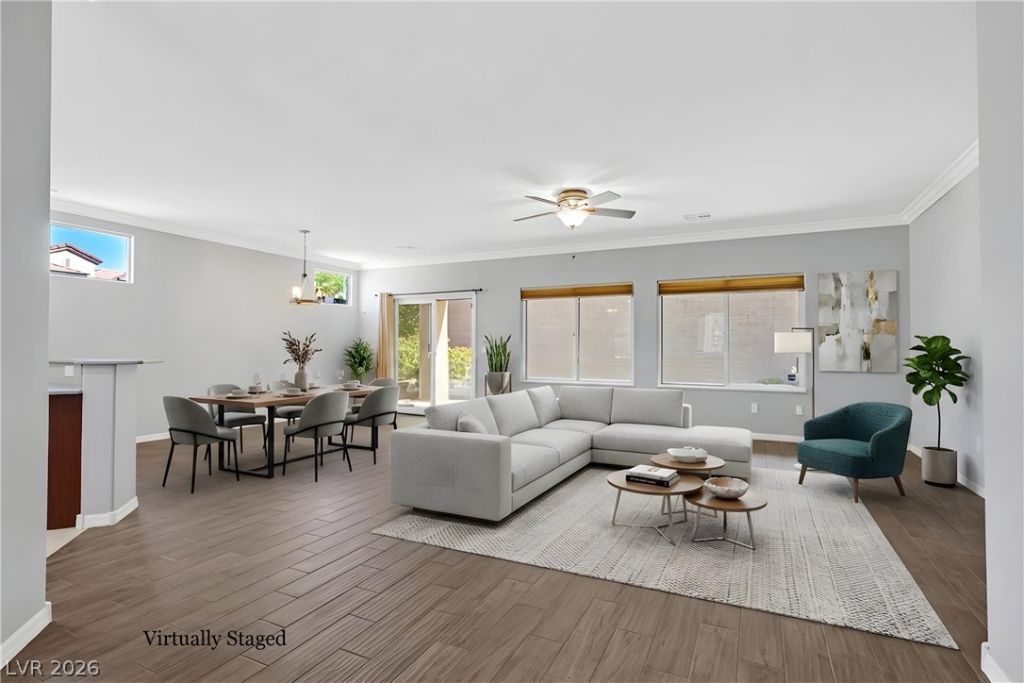 Located in the highly desirable Sun City Anthem community, this 2096 square foot popular Lincoln model is on a large corner lot, with private back yard for you to enjoy. The home boasts 2 bedrooms, and a closed office/den. Large great room with plenty of dining area for you to enjoy. The kitchen includes all appliances, and has a large pantry, and spacious eating area. Washer and dryer included too. This home has security screens and doors through out. Solar is owned, and NV Energy bill is averaging $ 30.00 per month!