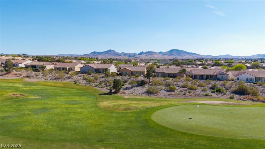 Rare opportunity to enjoy the 55+ lifestyle in this Lincoln model home in Sun City Anthem. Located on desirable golf course frontage, this well-maintained single-story home offers 2,096 sq ft with 2 bedrooms, 2 baths, and a versatile den. Perfectly positioned on the 14th hole of the Concord Course at Revere Golf Club, with golf course and mountain views from the shaded north-facing covered patio, allowing comfortable outdoor living. Enjoy expansive fairway views with no rear neighbors directly behind the property. The open floor plan includes bright living and dining areas and an eat-in kitchen with ample cabinetry and double-door pantry. The oversized primary suite features a walk-in closet and bath with dual sinks, soaking tub, walk-in shower, and separate toilet room. Residents enjoy Sun City Anthem amenities including clubhouses, fitness centers, pools, walking trails, and social activities, all near shopping, dining, and medical services.